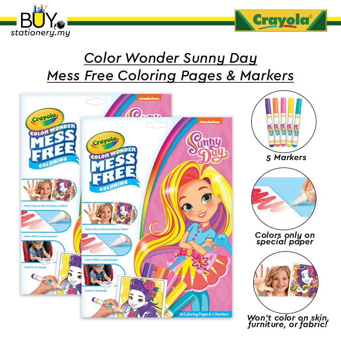 This crayola color wonder coloring kit includes mess free coloring pages featuring nickelodeon's sunny day.